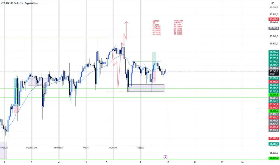 S1 – 25,550 (85.3%) → Muy probable barrida de liquidez.