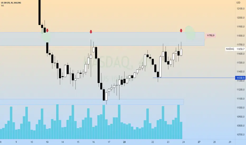 El Nasdaq sigue siendo rechazado en la zona de11700, muestra de que los inversores están expectantes a la temporada de reportes trimestrales donde se definirán los siguientes movimientos de los índices ya con un primer impacto de inflación en máximos históricos y posibles resultados bajos en ventas.