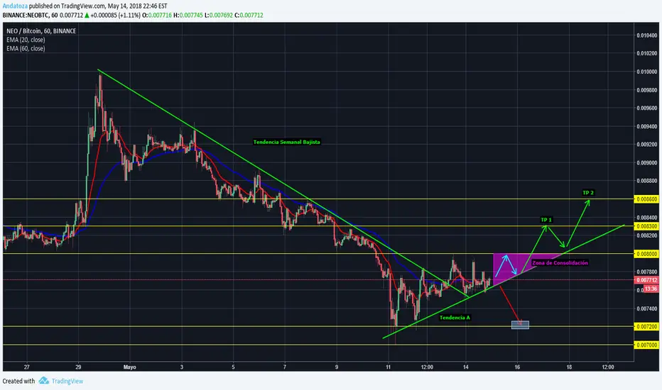 NEOBTC Luego de la Ruptura de la Tendencia Semanal Bajista se mantiene en la tendencia alcista "A" nueva.