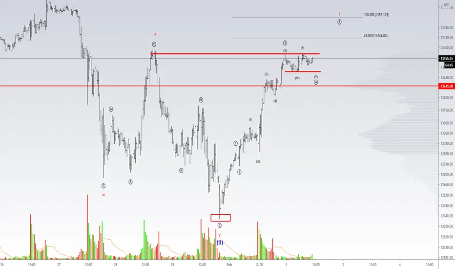 #Nasdaq #NQ1 #NDX Nombré el último swing como un impulso. Desde ayer a las 23.30, cuando se alcanzó la resistencia de los 13377 que estamos en una onda 4, de momento wx o ab completos. Espero una nueva validación en la zona de los 13302 (si quiebra 13245) para luego completar 5.
