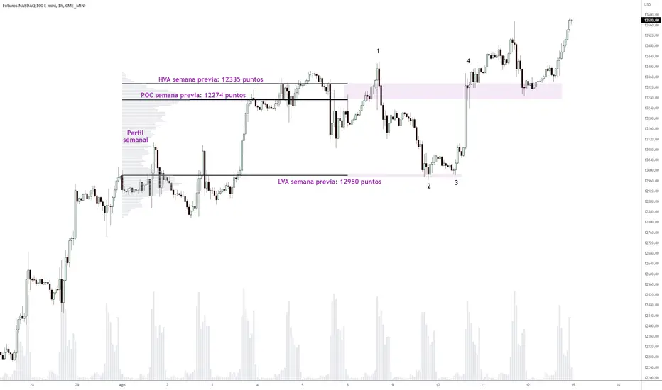 Como has podido leer en el título del artículo estamos realizando este ejercicio en el futuro del NASDAQ, teniendo en cuenta los niveles mencionados arriba en relación a la semana previa.