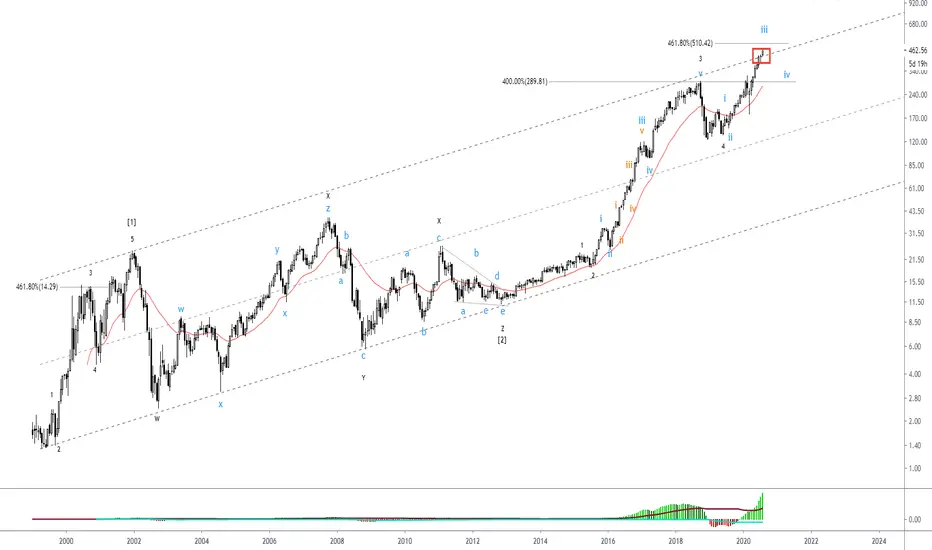 De corto, esperamos que complete la onda III en los 510, vuelva al canal que quebró, valide como soporte los 289 y se vaya a buscar el objetivo final.