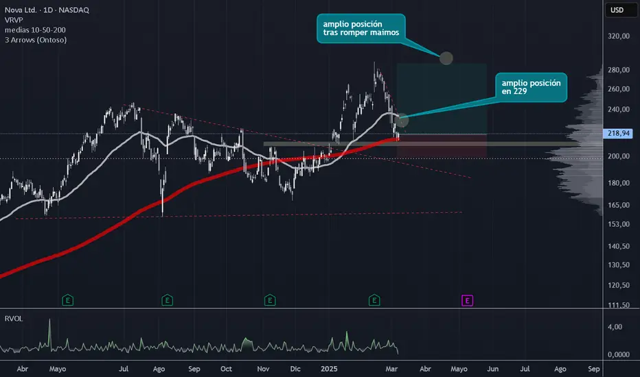 Ha alcanzado un soporte relevante junto con la EMA 200 en diario, lo que la sitúa en un punto técnico interesante. Sin embargo, aún no ha dado señales claras de rebote, por lo que iniciamos solo con 1/4 de posición.