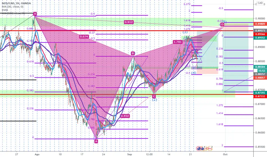 aprovechando el ultimo impulso de la onda 5 se llega a zona de compradores para culminar el patron armonico bat y tomar la venta por una cantidad generosa de pips