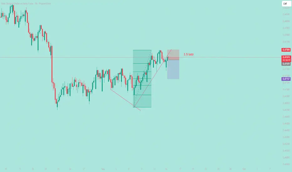 En los últimos días, el NZD/CHF ha mostrado una recuperación técnica tras la caída de finales de verano. Sin embargo, el repunte se estancó en una línea de resistencia dinámica a medio plazo, coincidiendo con la media móvil principal, donde el precio comenzó a mostrar signos de agotamiento. Hola, soy Andrea Russo, operador independiente de Forex y prop trader con $200,000 en capital bajo gestión. Gracias de antemano por su tiempo.