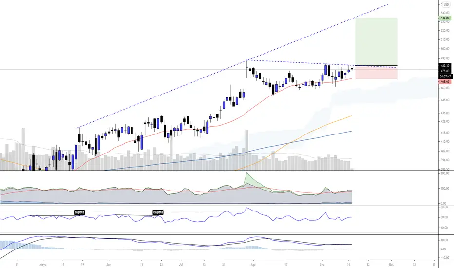 Tuvo buen rebote en la MA de 21, ahora con ganan de ir a quebrar la TL bajista que si lo logra se activa el Long con el SL corto.