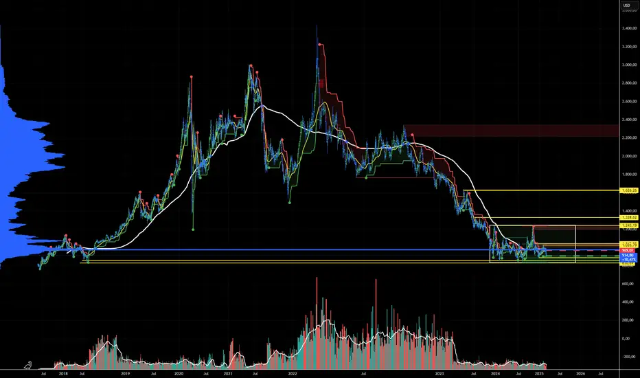 Si el precio logra mantenerse sobre 900-1,050 USD, podríamos ver un impulso hacia 1,200 - 1,320 USD como primer objetivo. Si se rompe con fuerza esta zona, el próximo nivel clave sería 1,620 USD.