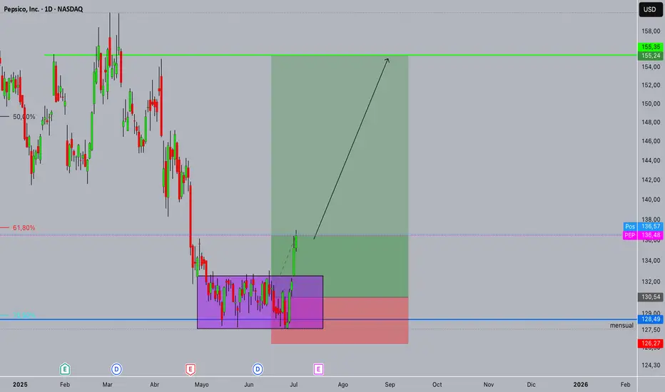 claramente vemos la ruptura de la acumulación de mercado, lo cual lo rompe de forma alcista confirmando que este mercado trae fuerza a la alza. Ya vengo posicionado desde más abajo, solo se me había olvidado compartirlo. Te veo en el take profit.