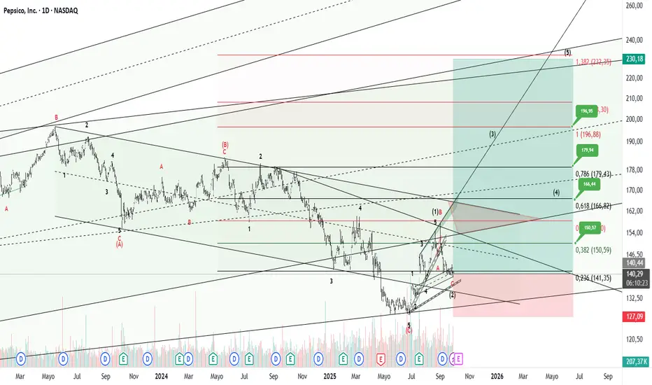 Operación en largo para Pepsico buscando un posible desarrollo de una onda 5 de grado mayor que nos lleve a buscar el posible objetivo del ultimo ATH con posibilidad de llegar a superarlo.
