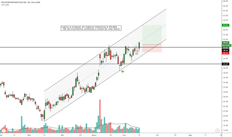 vamos a ver si rechaza la parte alta del canal y va a tocar la línea de tendencia alcista. De momento sigue tirando, a ver en que nivel de precio quiere descansarNota
