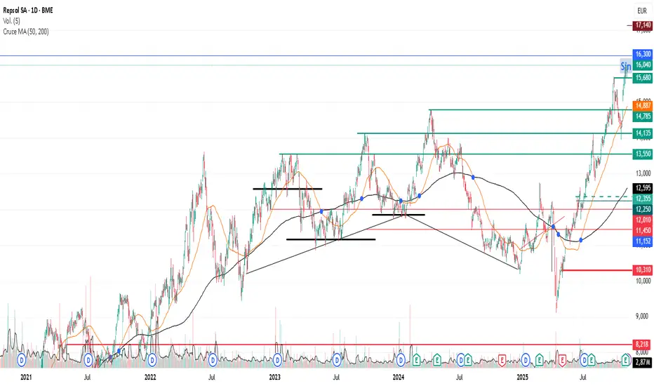 Repsol en precios, inicio figura de vuelta se redondea el techo, los fundamentales marcan el precio.
