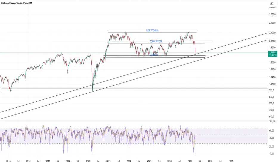 RTY) se encuentra probando un soporte clave correspondiente a los niveles de 2022-2023, en la franja de los 1631-1680$.