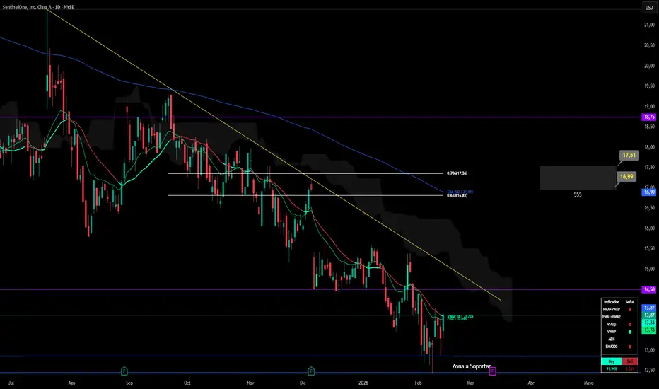 🔹 16,90–17 → zona donde pasa EMA 200