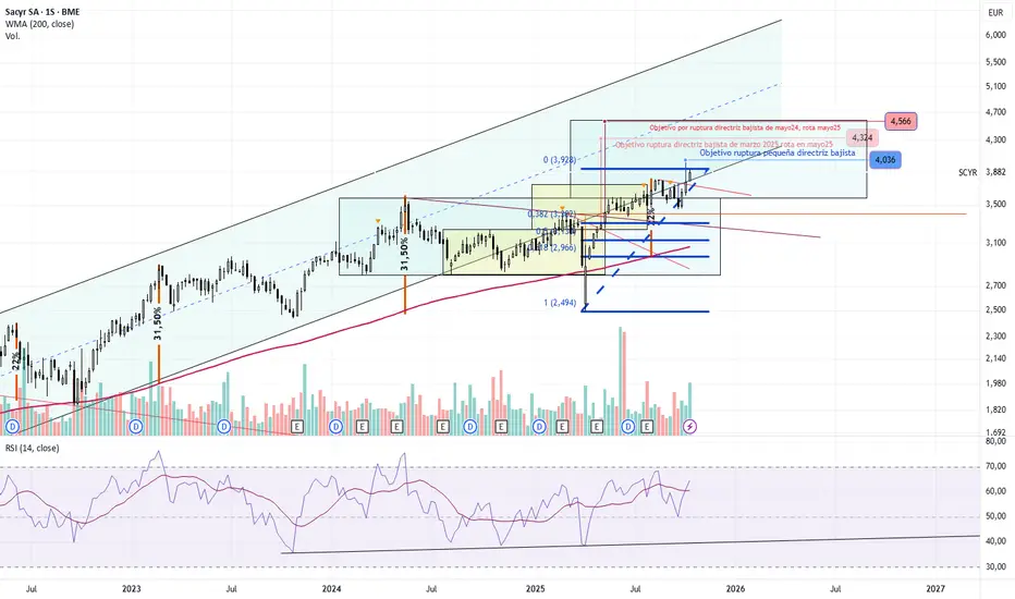 Vamos cumpliendo objetivos al alza ya? o un descanso para coger fuerzas?. En semanal aun no está muy sobrecomprado Sacyr, pero si es cierto que en diario ya está bastante arriba la sobrecompra podría hacer una parada en boxes.
