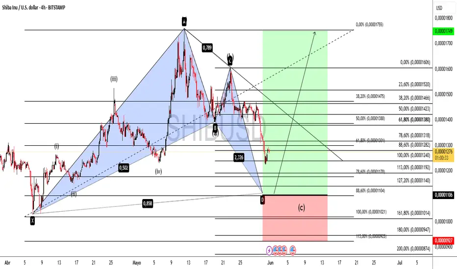 En contramos posible oportunidad de compra teniendo un conteo donde se identifica una onda motriz y es formacion de correcion, ahora si llega al 88.6 de fibo con confirmaria un patron armonico BAT