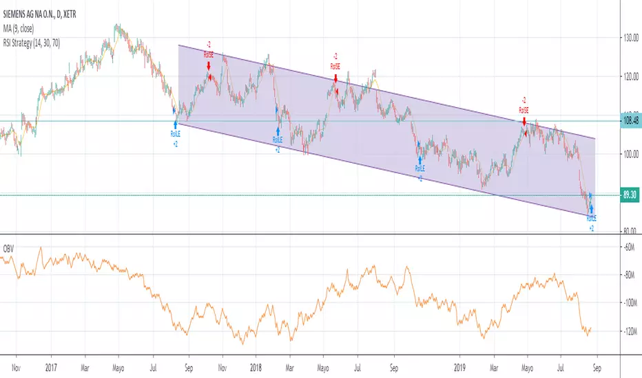 En este contexto las acciones de Siemens han subido pero siguen lejos de romper la tendencia bajista. Es probable que alcanzaramos la banda superoior del canal de precios pero todavia no hay razones para salir por ecnima del nivel de resistencia. En realidad, bajamos cada vez mas debajo de los antiguos niveles de soporte.
