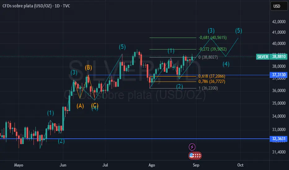 - **Patrón ABC:** Tras alcanzar 42,0000 (punto B), la plata corrigió hasta 37,3130 (punto C), y ahora busca recuperación.