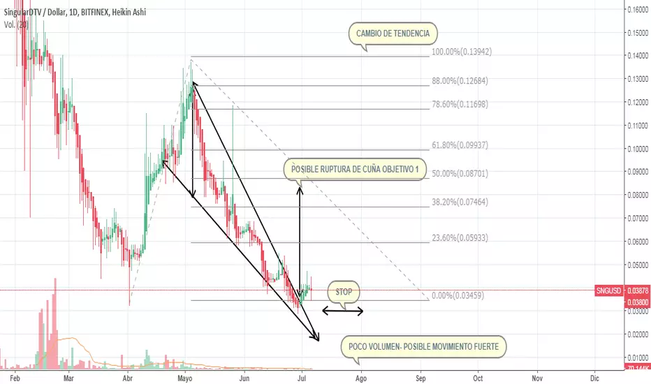 Singular DTV el token para músicos y artistas nos indica un posible ruptura de cuña con un posible movimiento de los 0.034 $ hasta los 0.08 como primer objetivo.