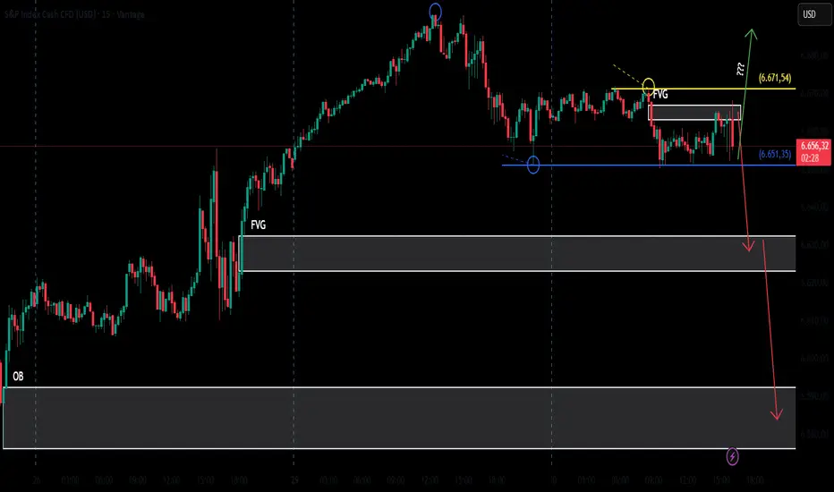 Al momento il prezzo sta “giocando” all’interno di un FVG, dove potrebbe svilupparsi un movimento ribassista, e spero che lasci un livello interessante per potermi posizionare tramite un ordine limite.
