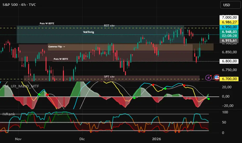 Para que la volatilidad se active de forma clara, sería necesario que el SPX rompa con decisión el nivel de 6.800; un movimiento por debajo de esa zona podría desencadenar una nueva fase de volatilidad.