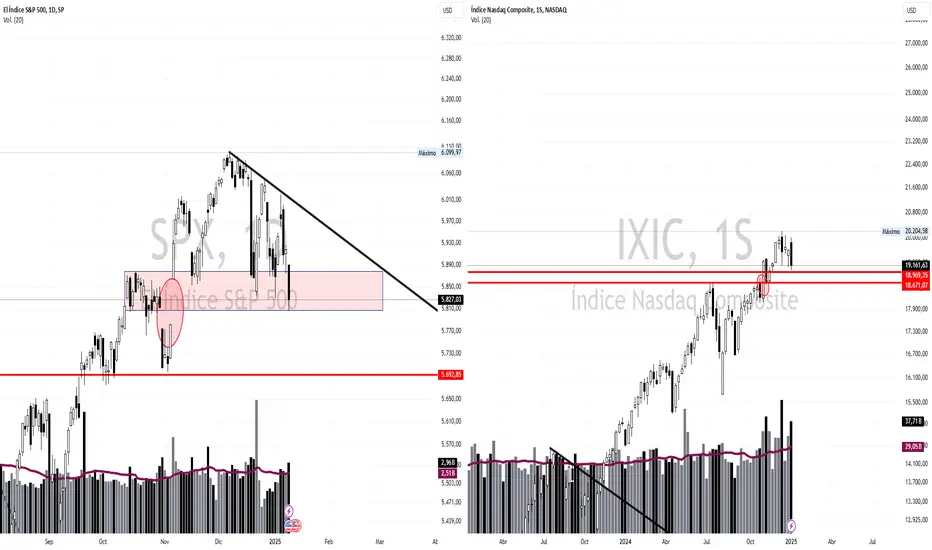 IXIC está un poco mejor una zona de resistencia y el gap lo tiene mas lejos, hay que ver si consolida esa zona o se lo va cerrar pero los dos índices creo que irán a la par. Hay que ver reacciones en los próximos días.