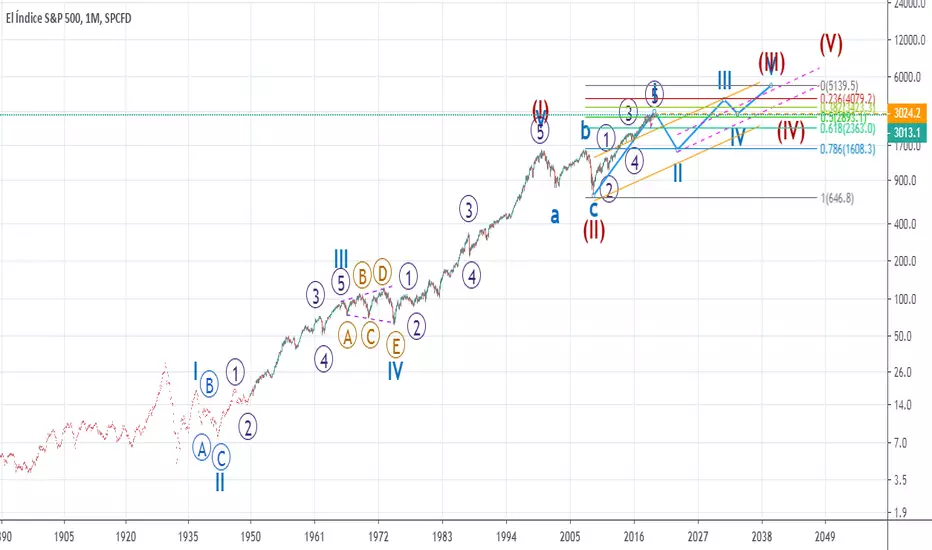 SPX Análisis histórico y proyección en ondas de Superciclo utilizando ondas de Elliott.