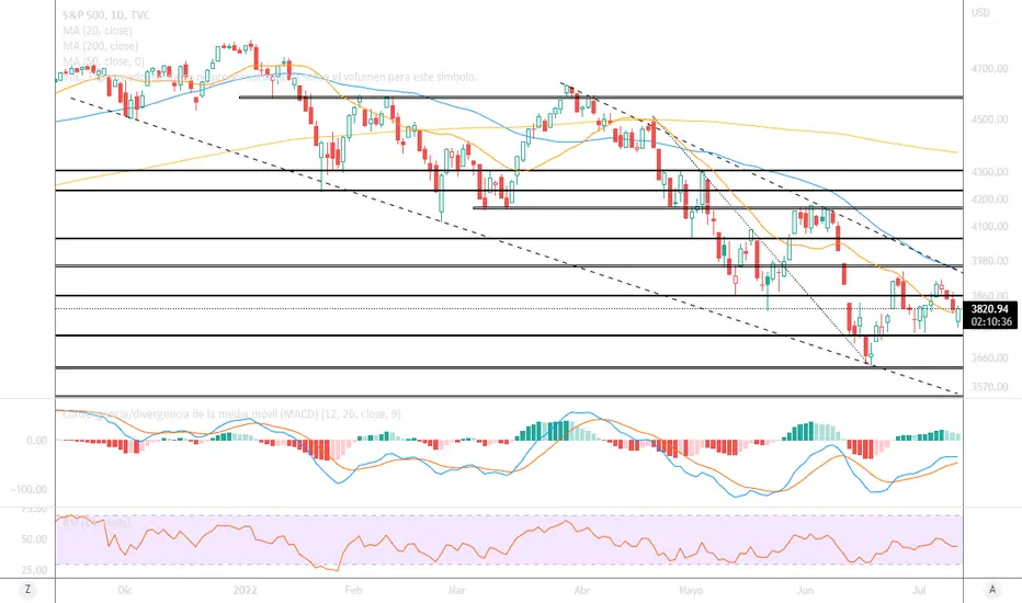 Las referencias siguen siendo las mismas ya que las últimas dos semanas fueron de poco movimiento, debajo de 3730 puntos seguiría a 3630, y 3550 en caso de quebrar. Sobre 3870 buscaríamos la línea bajista en 3970, que abriría la chance de buscar 4060 y 4160 puntos en principio.