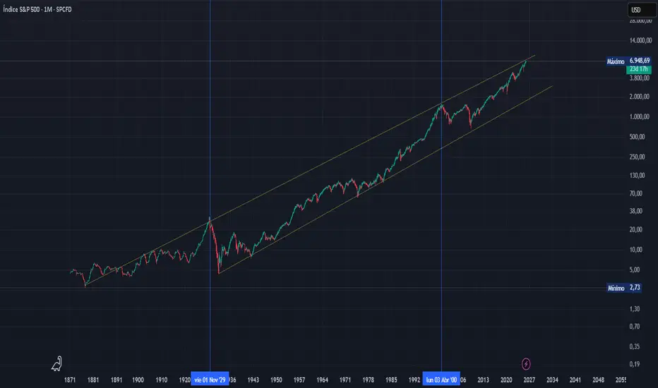 S&P 500 Monthly – Historical Logarithmic Chart –