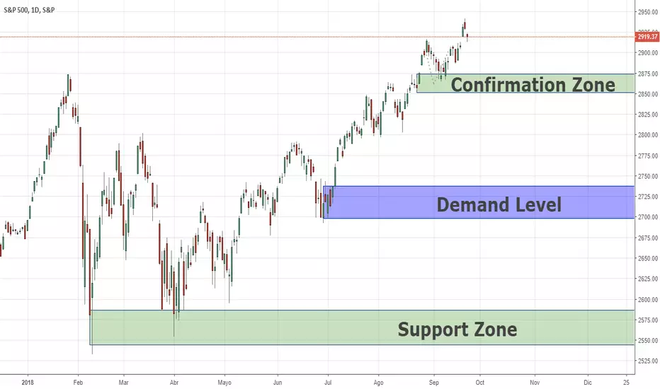 A largo plazo, el SPX500 0.14% ha alcanzado recientemente un nuevo récord. Como siempre, después de un rally largo, preferiría buscar una posición de venta, creo en la lógica simple de vender alto y comprar bajo, y el SPX500 El 0.14% definitivamente está en un nivel alto ahora, si el precio rompe la zona de confirmación debajo, indica que el precio ha cambiado el impulso a largo plazo de alcista y bajista, si eso sucediera buscaré una P "Una configuración de venta posición, mi primer objetivo será la demanda a continuación, y el objetivo final es la zona de soporte en la parte inferior.