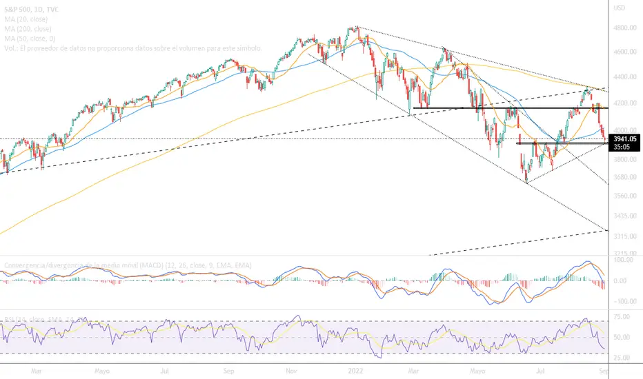 En caso de quebrar 3900, como ya dijimos en la idea anterior sería la confirmación de una vuelta a los mínimos anuales en 3700/3650.