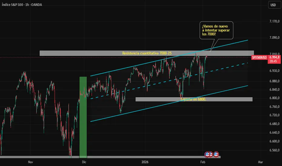 Actualmente, el S&P 500 se encuentra nuevamente cerca de la frontera de los 7.000 puntos, un nivel de decisión clave para el mercado.
