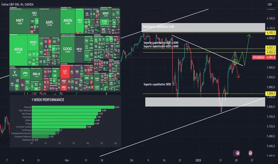 Sin embargo, el índice se aproxima a resistencias importantes en 6020 y 6040, lo que podría frenar el impulso o provocar una reversión. A pesar del optimismo reciente, el SP500 sigue oscilando dentro de un rango de 5850-6100, lo que exige prudencia en la toma de decisiones.