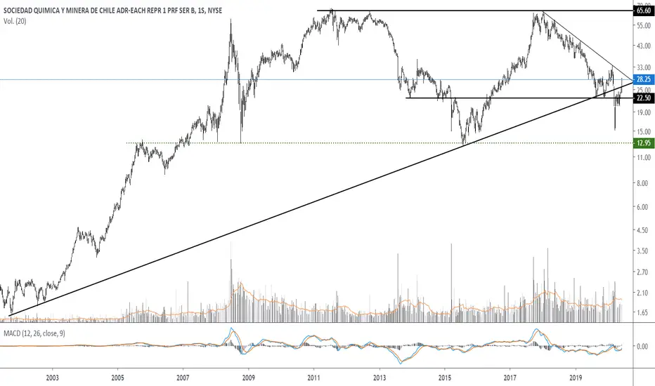 Si logra pasar bien por acá, irá contra la línea bajista de mediano plazo que trae desde la zona de máximos de 65/66, y cruza para esta semana en los 30/31. En caso de lograr ir por encima, deberá confirmar la reversión de mediano logrando el cierre semanal arriba de los 33.5/34 dólares para pensar en un largo camino nuevamente hacia los 65/66.