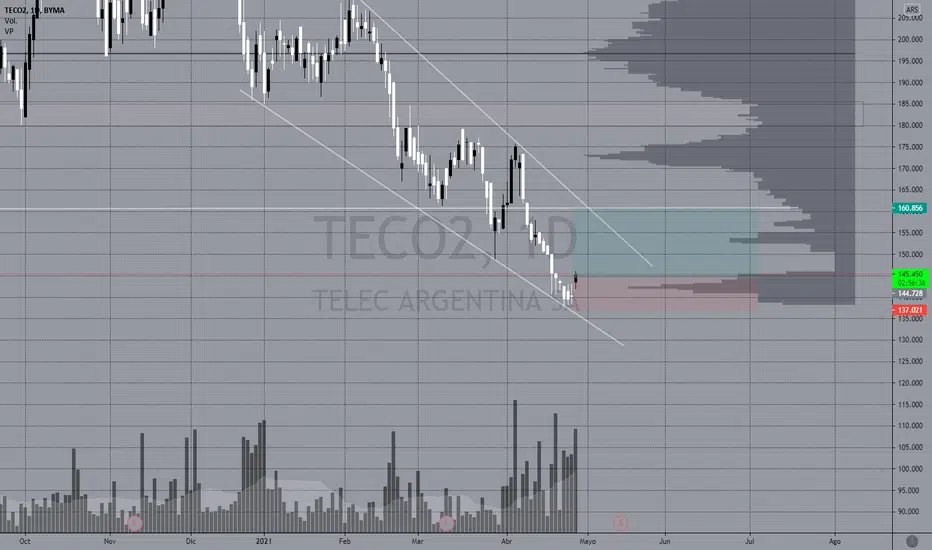 Posible rebote en la parte baja del canal bajista. Lo que me llamo mas la atención es la cantidad de volumen (perfil de volumen) que apareció por la parte baja, lo cual me hace pensar que manos grandes están comprando.