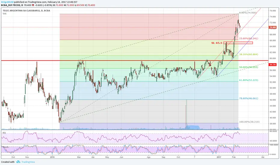 Para mi rebota y sale a buscar nuevamente el maximo anterior 74.9.