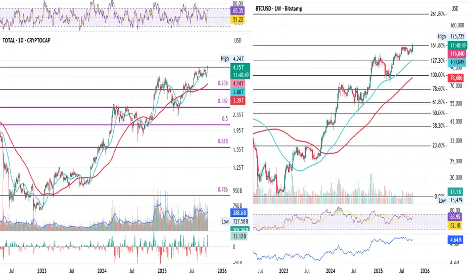 TOTAL vs BTC – Third Test at Fib Resistance