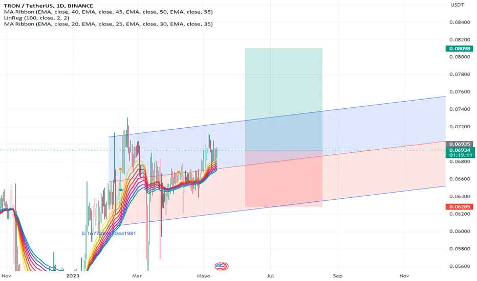 móviles (MA) de diferentes longitudes que se trazan en el mismo gráfico para crear un indicador similar a una cinta.