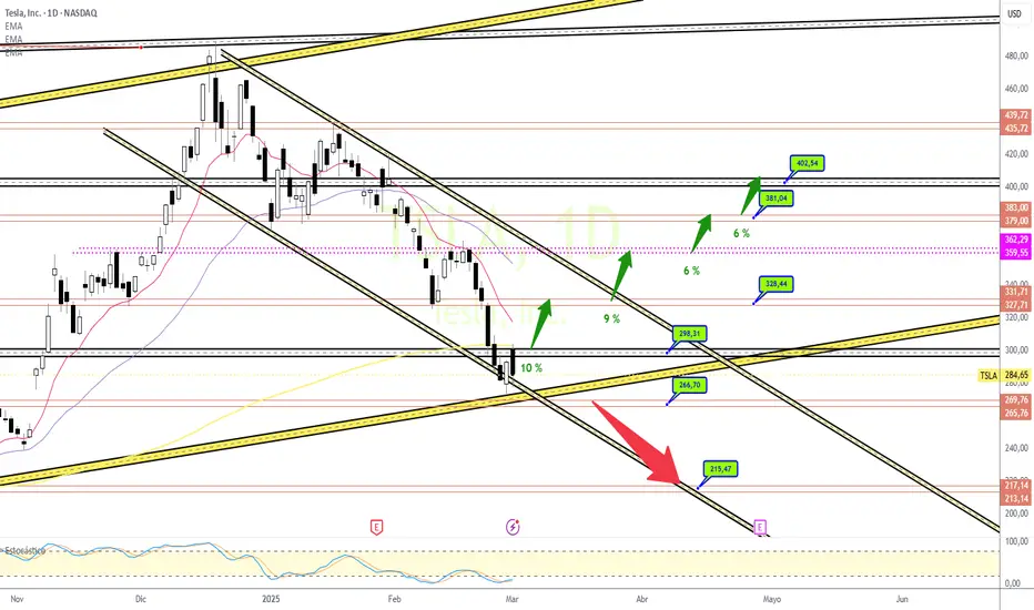 👉 Por otro lado, si Tesla logra romper y sostener por encima de los 328 dólares, se estaría confirmando un cambio en el sentimiento del mercado. Esta ruptura podría marcar el inicio de una tendencia alcista, ya que superaría una resistencia importante que hasta ahora ha limitado el repunte del precio