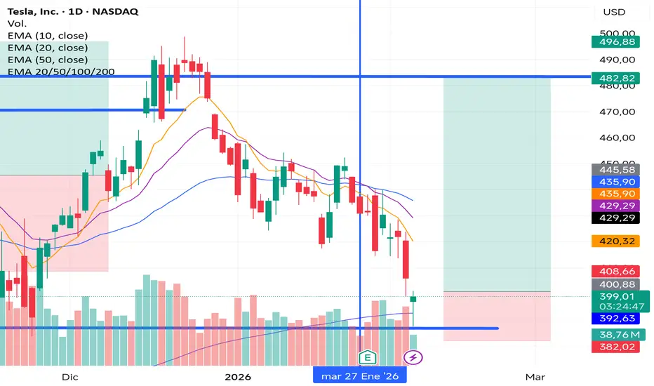 TSLA ) está dejando un Hammer en la EMA200, que además coincide con un mínimo relevante. OPORTUNIDAD de entrar con riesgo mínimo con Stoploss debajo de la EMA200.
