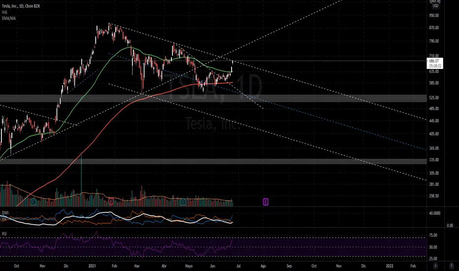 Tesla contra su tl correctiva que viene de máximos, como cosas positivas, el volúmen del día viene siendo bueno, hay bastante operatoria en el día. Puede hacer un retroceso para juntar fuerza y romperlo, hay que esperar a ver como se desarrolla el día