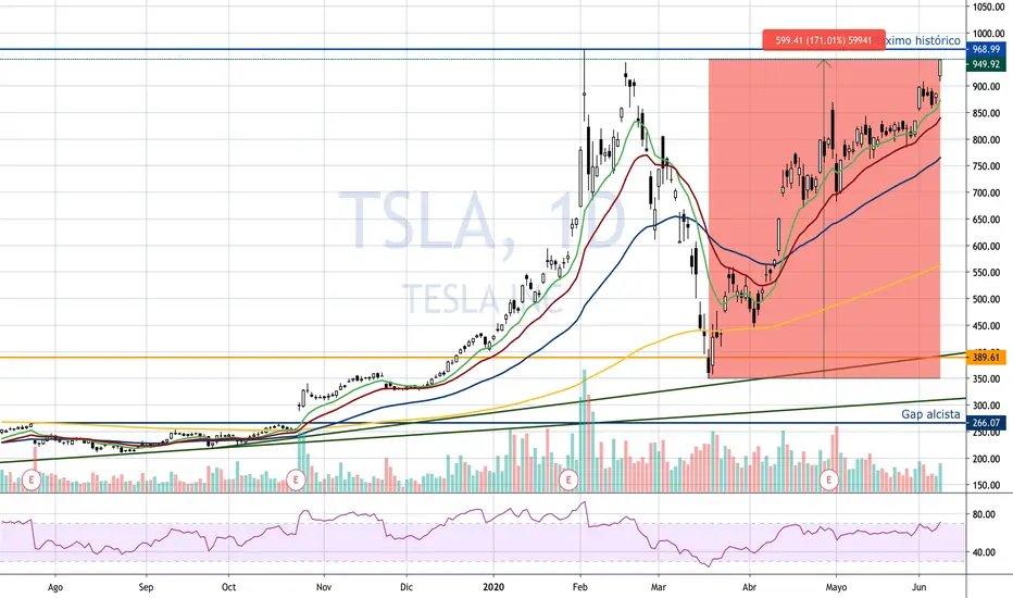 Tras caer hasta los $350 el 18 de marzo y registrar poco más de -60% de pérdidas, el precio por acción de Tesla está registrando un +171% de incremento, al alcanzar los $950 por acción y cerrar muy cerca de su máximo histórico.