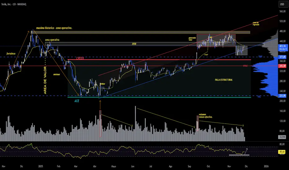 Mientras TSLA esté arriba del VPOC, la estructura sigue sostenida.