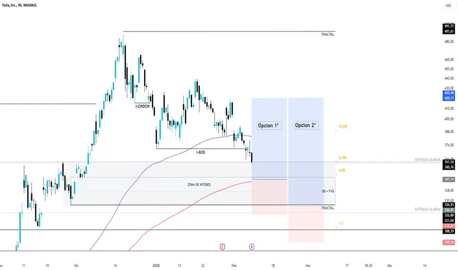 El precio de TSLA está alcanzando una zona de interés clave que mencionamos en análisis anteriores. Actualmente, nos encontramos en el rango de $347 - $330, donde hay múltiples confluencias técnicas que refuerzan la idea de una posible acumulación a largo plazo. 🔍