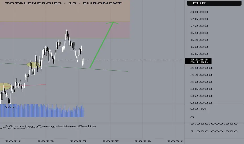 Luego de tener precios bajas en el petróleo y esperando una recuperación de estos veo a esta petrolera que ha roto una línea de de corrección de muchas semanas y ahora se dispone a a ir a los 74€ (40%de ganancias) y 90 si el mercado siguiese favorable con un 70% de ganancias