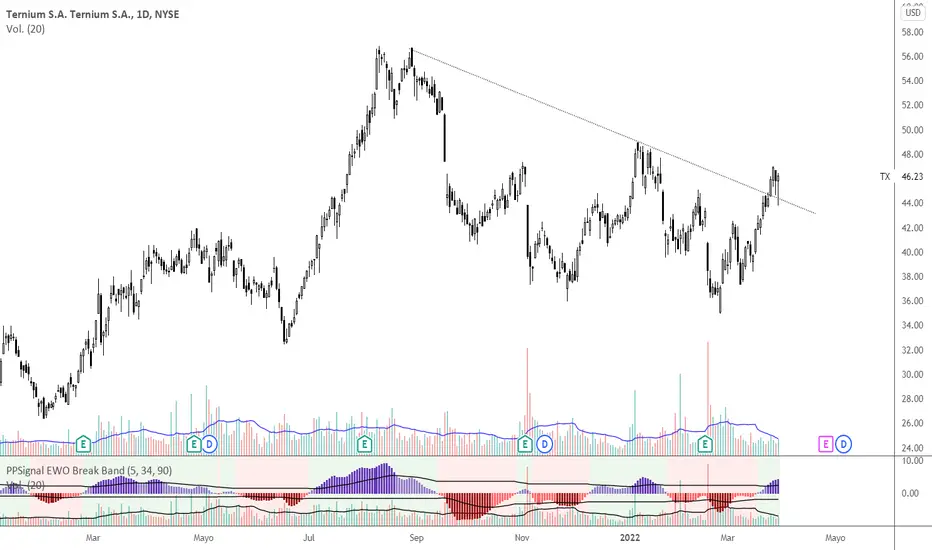 Interesante quiebre de linea de tendencia bajista y throback reconociendo como soporte. Abajo el control está en 43, arriba debe superar 49-50.