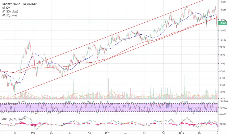 Rompió canal alcista a la baja, debe recuperar 14.50 para volver dentro del mismo. De no lograrlo, los primeros soportes se divisan en 12.50, 12 y 11.50 (varios escollos relativamente cerca). Lo más importante es que finaliza una tendencia alcista vigente desde septiembre 2015