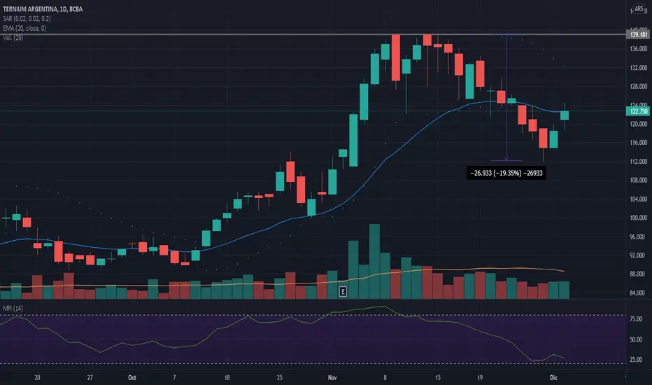 TXAR tuvo su toma de ganancias del 20% luego de tener muy sobrecomprado el MFI.