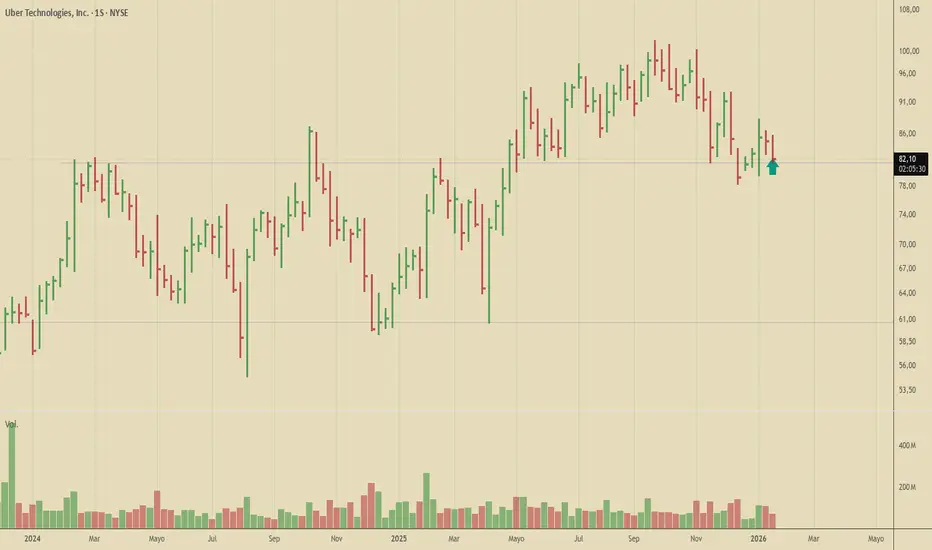 Hoy compré UBER, que definió un rango durante el 2024 para romperlo al alza durante el 2025 y está revisitando la anterior resistencia como potencial soporte. En caso de perderlo, entraría nuevamente al rango y la próxima zona de compras se ubica en su base.