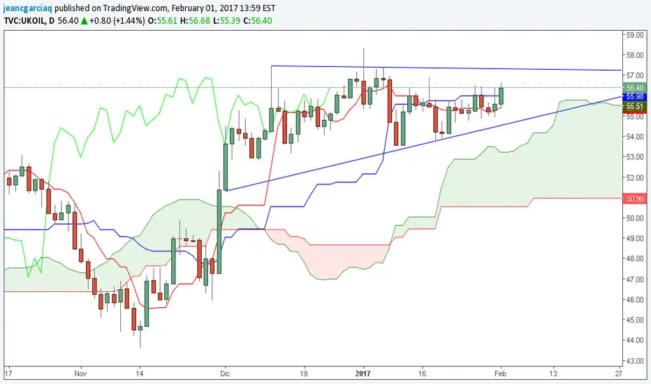 Si el precio logra cerrar por encima del Kijun Sen Plano, va a constituir una posible señal de compra pero debe ser confirmada por cierre encima de la línea de tendencia y el corte al alza del Tenkan Sen sobre el Kijun Sen, estando el Chikou Span por encima del precio.