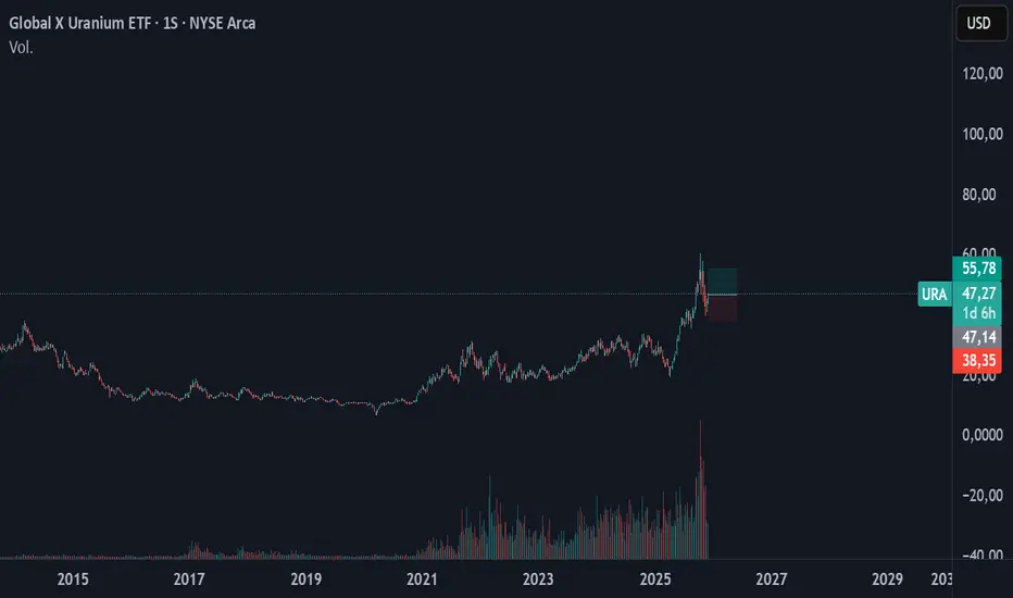 ¡Buen día a todos! Ojo a esta oportunidad Swing en el Uranio. El precio confirma una estructura alcista tras años de consolidación. El gráfico habla claro y, como dicen: 'The trend is your friend'. A favor de la corriente